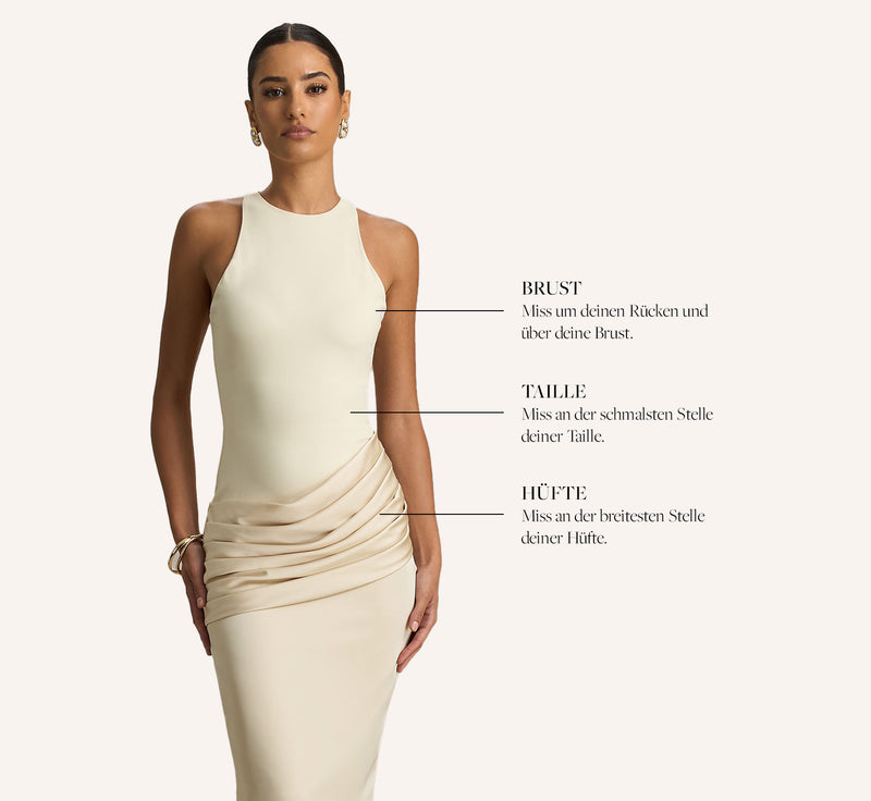 Setze ein beeindruckendes Statement mit Always, wo Eleganz auf modernen Chic trifft. Gefertigt aus unserem hochwertigen Stretch-Jersey in tiefem Flaschengrün, fällt dieses Maxikleid wunderschön und schafft eine schmeichelhafte, anmutige Silhouette. Der hohe Kragen verleiht eine elegante Note, während das asymmetrische Cape-Overlay einen mutigen, modischen Akzent setzt. Abgerundet durch Raffung, die aus allen Blickwinkeln vorteilhaft wirkt, und einen mittigen Rückenschlitz für Bewegungsfreiheit und einen Hauch von Verführung. Kombiniere es mit eleganten High Heels und Goldschmuck für einen perfekten Abendlook.