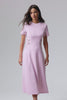 Anmutig und dennoch beeindruckend, So Sweet ist eine nahtlose Mischung aus eleganter Weiblichkeit und schickem Stil. Aus unserem hochwertigen Krepp in einem zarten Rosa geschnitten, schmeichelt diese Midi-Silhouette mit müheloser Eleganz. Der Rundhalsausschnitt bietet ein sauberes, modernes Finish, während handgeschnittene Stickereien entlang der Ärmel und seitlich an der Taille Tiefe und ätherischen Charme hinzufügen. Ein voller A-Linien-Rock fließt mit sanftem Volumen und verleiht einen Hauch von Romantik. Das perfekte Stück für Anlässe, die dezente Schönheit und raffinierte Details erfordern.